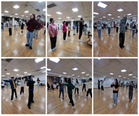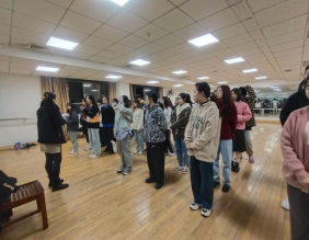 在此次活动中分为三个阶段。第一阶段,14个教学院代表分成7组,分别在两个形体房同时进行训练。